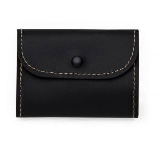 Bloco de anotação Bidins em couro sintético com botão de pressão. Possui aproximadamente 80 folhas brancas sem pauta.
