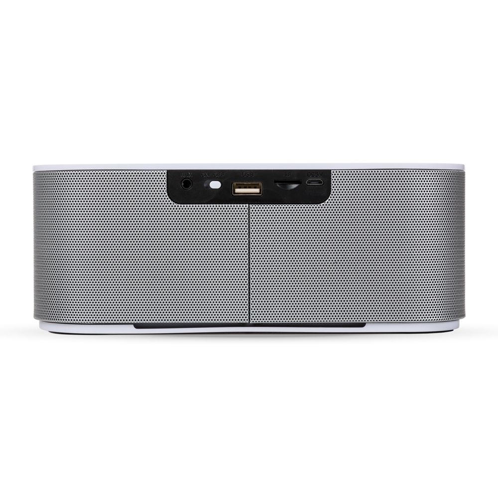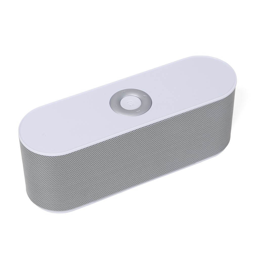 Caixinha de som bluetooth multifunções. Design fino e material plástico resistente, possui: botão On/Off no verso, botão >|| (MODE), botão < retroceder faixa ou diminuir volume, botão > avançar faixa ou aumentar volume, botão PLAY/PAUSE e atender chamadas, entrada P2/auxiliar(caixinha de som pode ser conectada no computador, basta segurar o botão central para alternar o modo), entrada microUSB, microfone, entrada microSD(cartão de memória) e entrada USB(leitura de pen drive). Funcionamento: ao segurar o botão POWER a caixinha irá ligar/desligar; apertando o botão MODE irá trocar os modos de funcionamento entre Bluethooth, Rádio(necessário conectar o cabo na entrada microUSB que serve como antena para sintonização) e quando conectado um cartão microSD ou Pen Drive também é possível alternar estes modos por este botão; ao segurar o botão - irá diminuir o volume e caso aperte-o ele irá retroceder a faixa; ao segurar o botão + irá aumentar o volume e caso aperte-o ele irá avançar a faixa; apertando o botão play/pause ele irá iniciar a música ou parar, este botão também funciona para atender chamadas durante a conexão com o celular(basta apertar o botão para atender a chamada e falar diretamente da caixinha). Quando o item estiver ligado soará um bipe botão central >|| ficará com luzes acesas, possui parte inferior possui borrachas anti deslizantes e auto-falantes laterais. Standard: 3.0+EDR, alcance de 10 metros, Potência nominal: 5w+5w, tempo de funcionamento pode ser de 5-8horas ligado, S/N: 80db, Distorção: 1%w1KHz e tempo de recarga de 3 à 4 horas. Acompanha cabo USB.