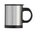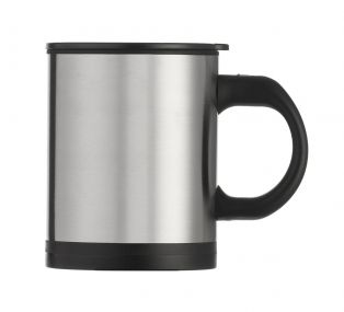 Caneca mixer 400ml em inox, possui detalhes em plástico resistente preto(inclusive a parte interna).Tampa rosqueável e com uma abertura para poder ingerir o líquido, parte inferior está o compartimento onde é colocado as pilhas(2 AA), basta rosquear. Para funcionamento basta apertar o botão “STIR” no cabo da caneca e a válvula interna irá começar a girar.