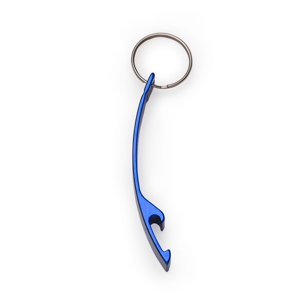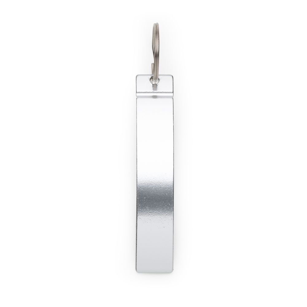 Descrição: Chaveiro abridor de metal brilhante formato “pé de galinha”.