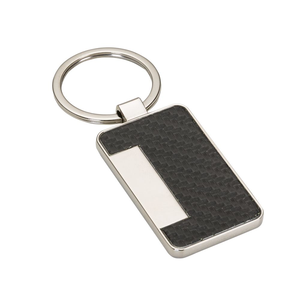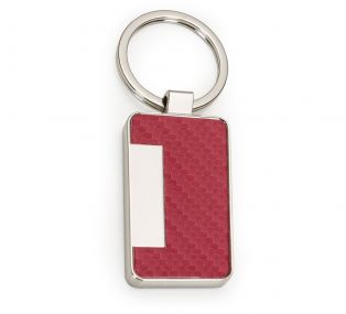 Descrição: Chaveiro metal brilhante formato porta cartão, parte colorida em couro sintético texturizado e verso liso.