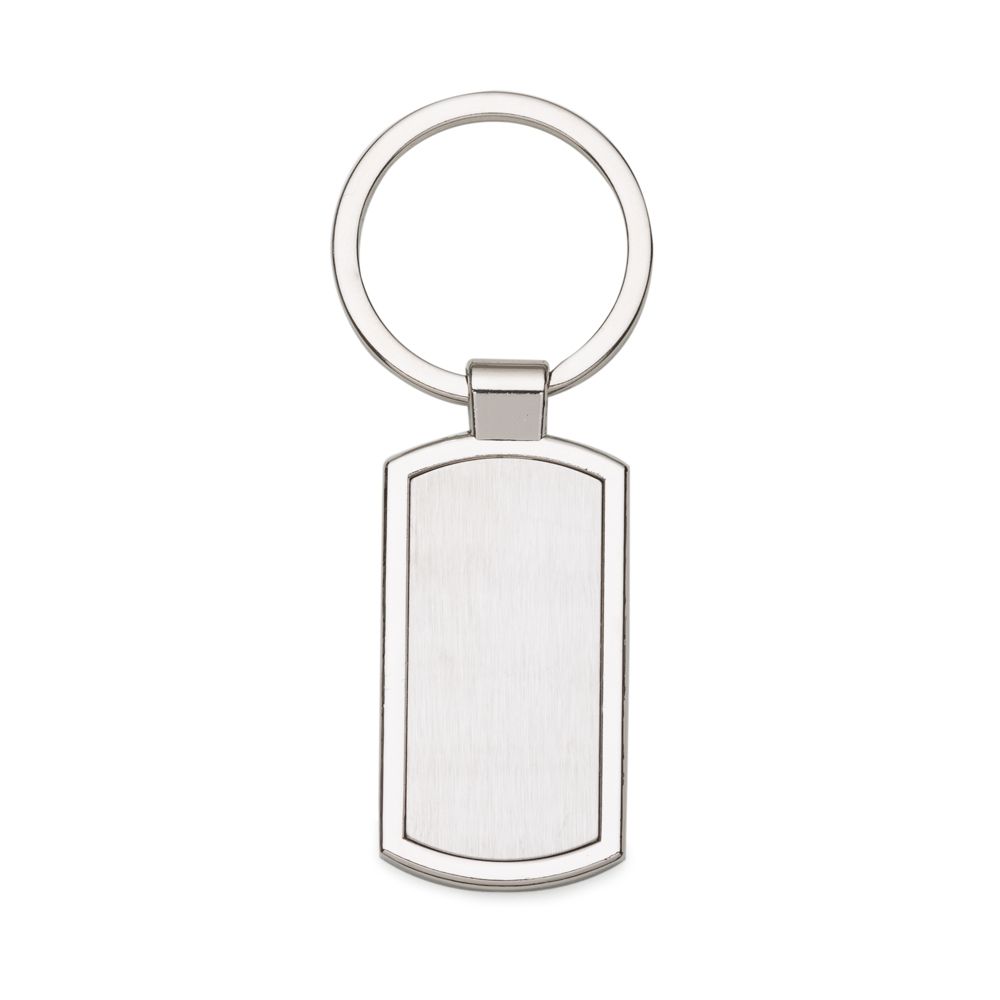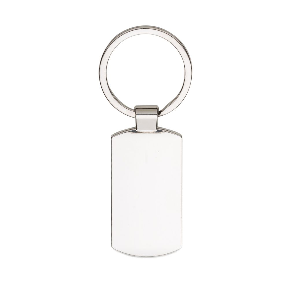 Descrição: Chaveiro de metal retangular com bordas arredondadas. Chapa central escovada e verso brilhante. OBS.: PEDIDO APENAS MÚLTIPLO DE 50 PEÇAS!