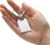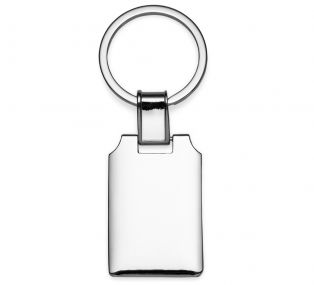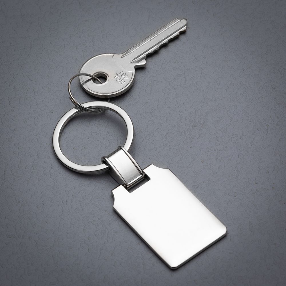 Descrição: Chaveiro metal retangular brilhante, frente e verso iguais, suporte da argola giratório.