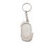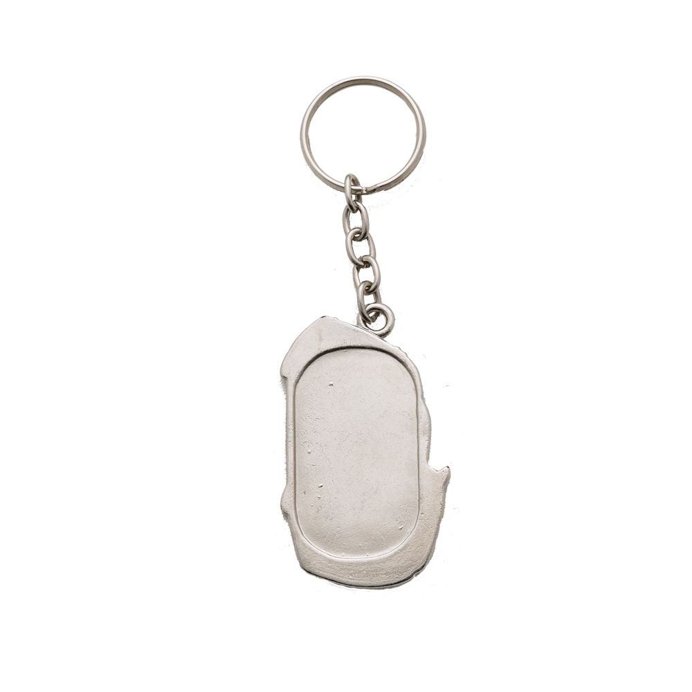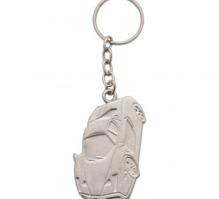 Descrição: Chaveiro metal formato carro esportivo, frente com detalhes em relevo e verso liso com contorno retangular.