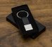 Descrição: Chaveiro de metal quadrado com alça de couro sintético. Frente lisa e verso com detalhe do parafuso.