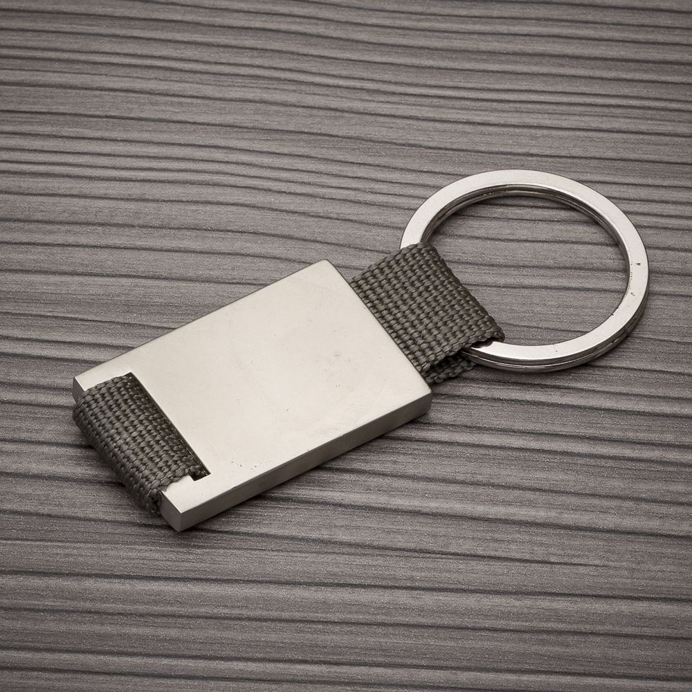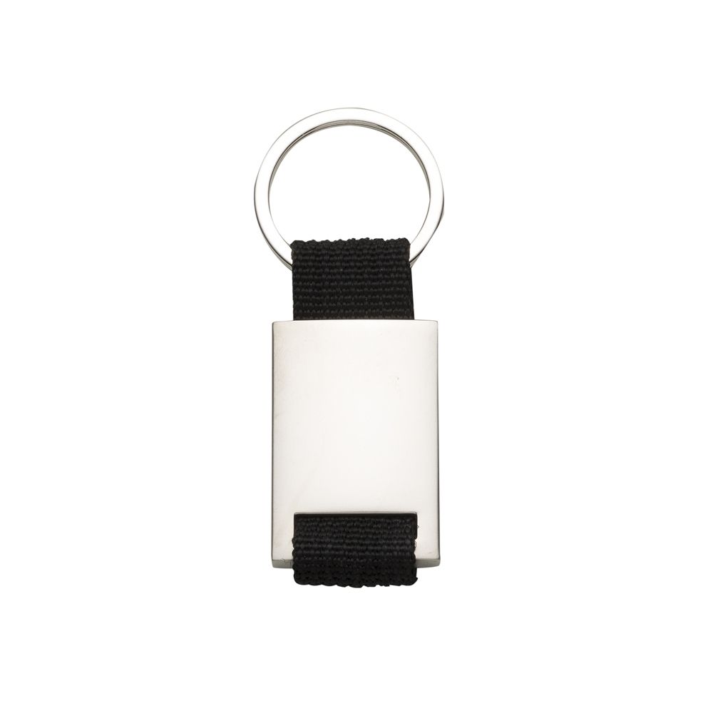 Descrição: Chaveiro de metal com detalhe colorido em nylon. Metal liso e fosco de ambos lados.