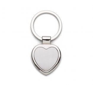 Descrição: Chaveiro de metal formato coração, possui chapa central em inox e verso brilhante liso.