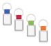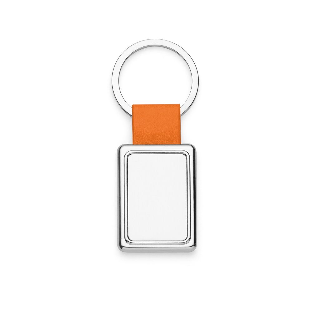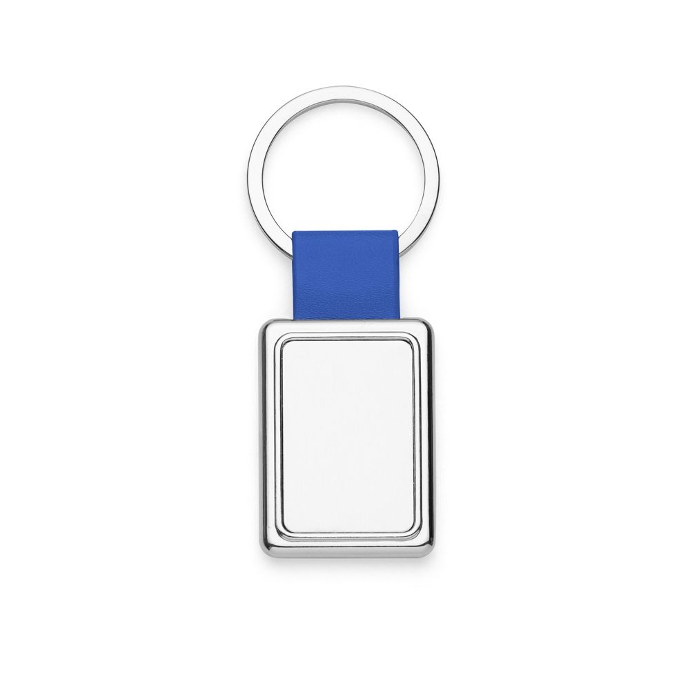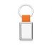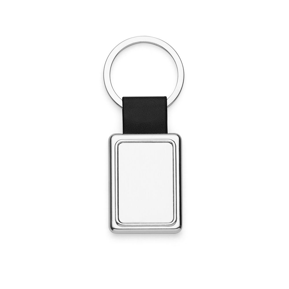 Descrição: Chaveiro metal retangular com detalhe emborrachado colorido, frente e verso liso com chapa inox central.