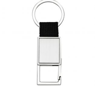 Descrição: Chaveiro de metal com mosquetão(sem trava), chapa central em inox e alça de nylon.