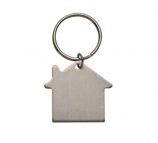 Descrição: Chaveiro plaquinha metálica em formato casa com pintura fosca, frente e verso liso.
