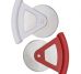 Descrição: Cortador de pizza triangular em plástico resistente com lâmina redonda. Chapa metálica central, frente e verso liso.