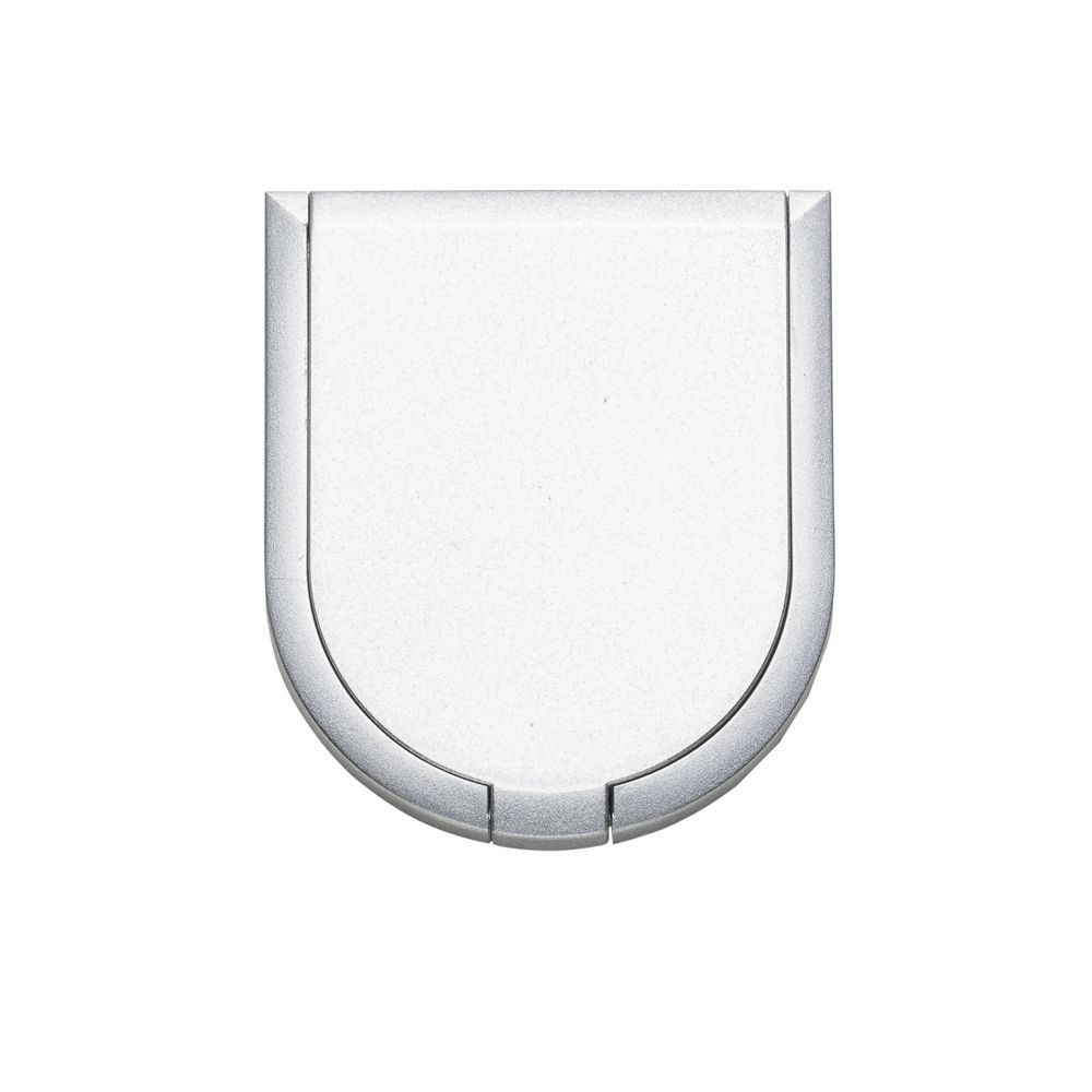 Descrição: Espelho duplo plástico em formato escudo, sem aumento.