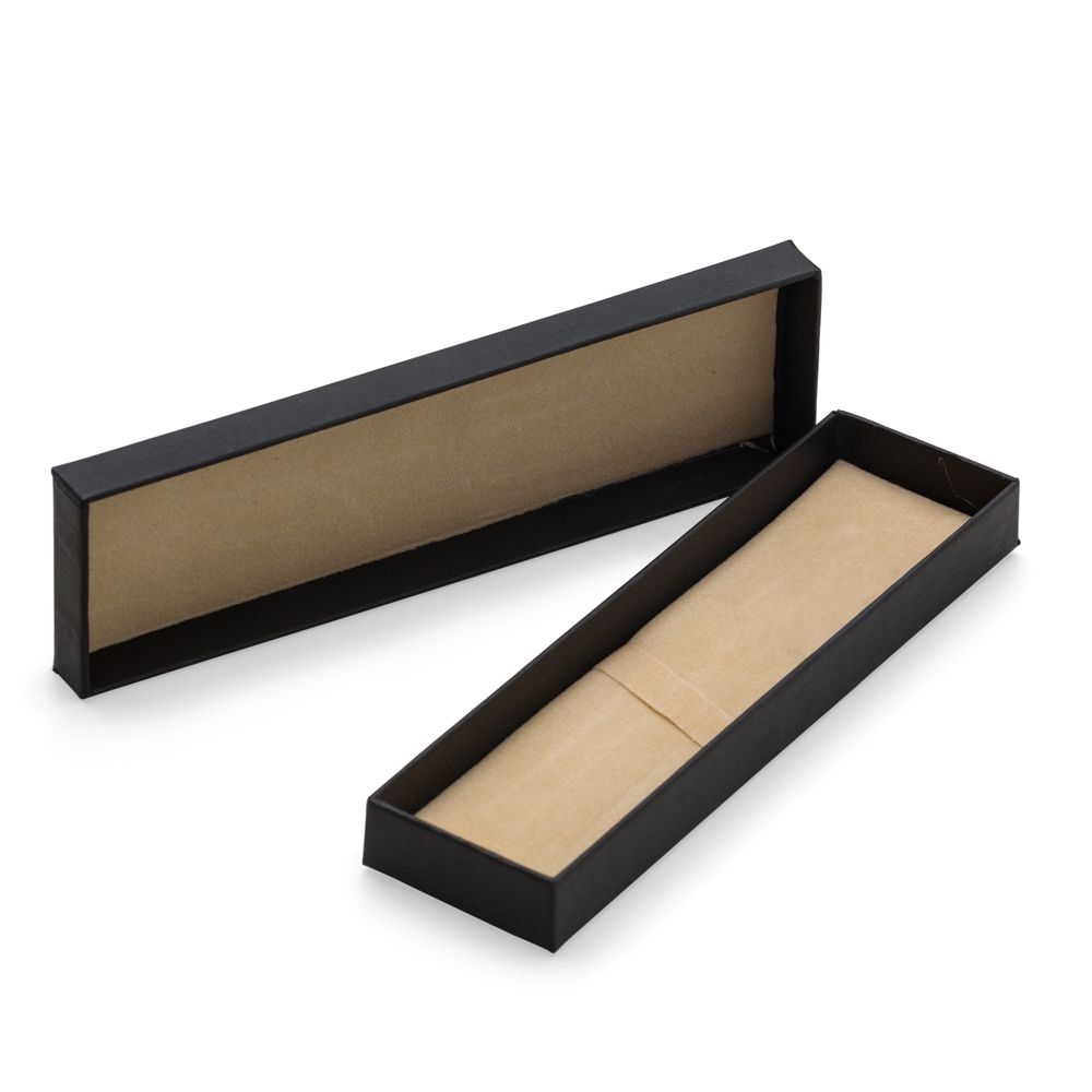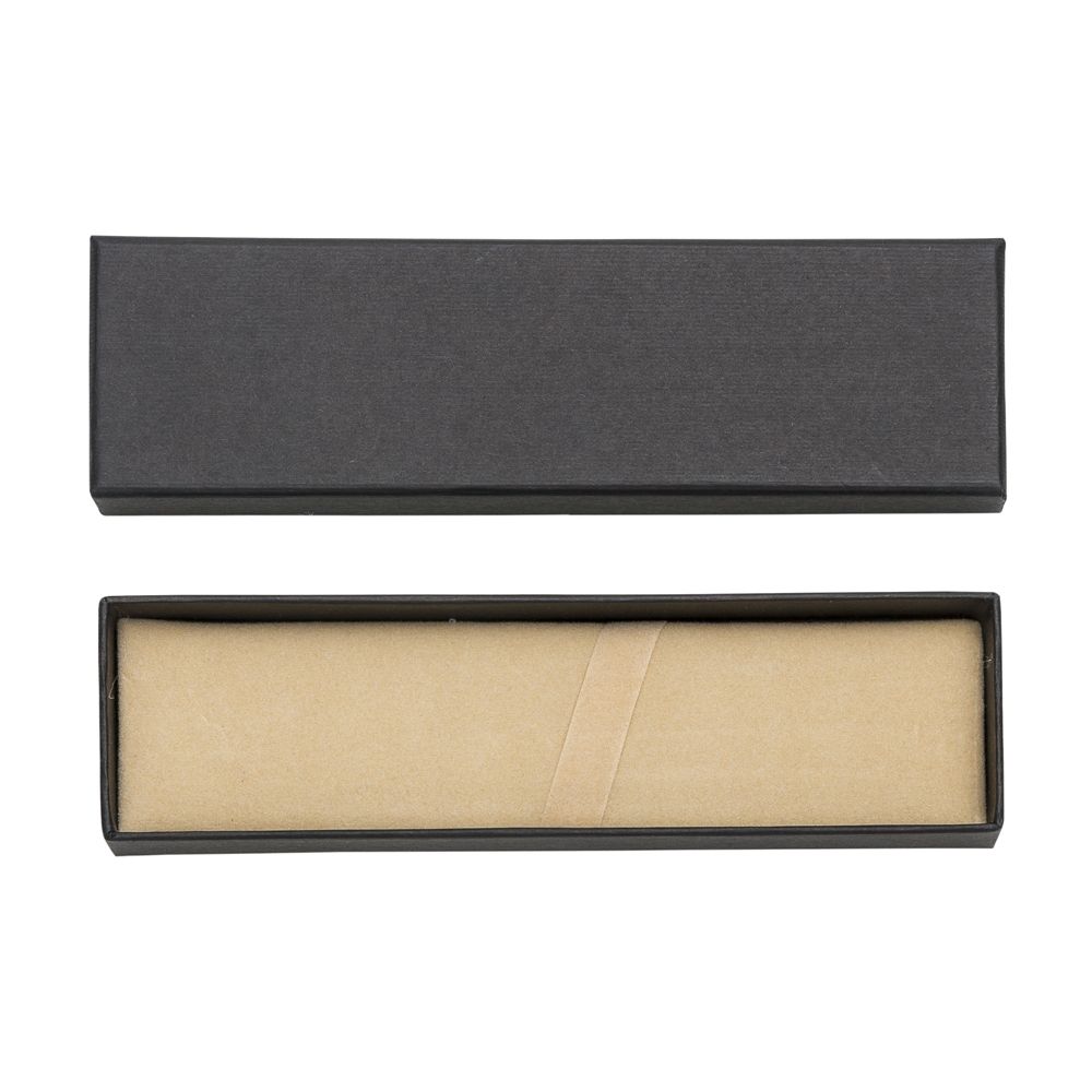 Descrição: Estojo de papelão para uma caneta. Parte interna revestida com veludo e possui elástico para fixar a caneta. OBS.: PEDIDO APENAS MÚLTIPLO DE 50 PEÇAS!