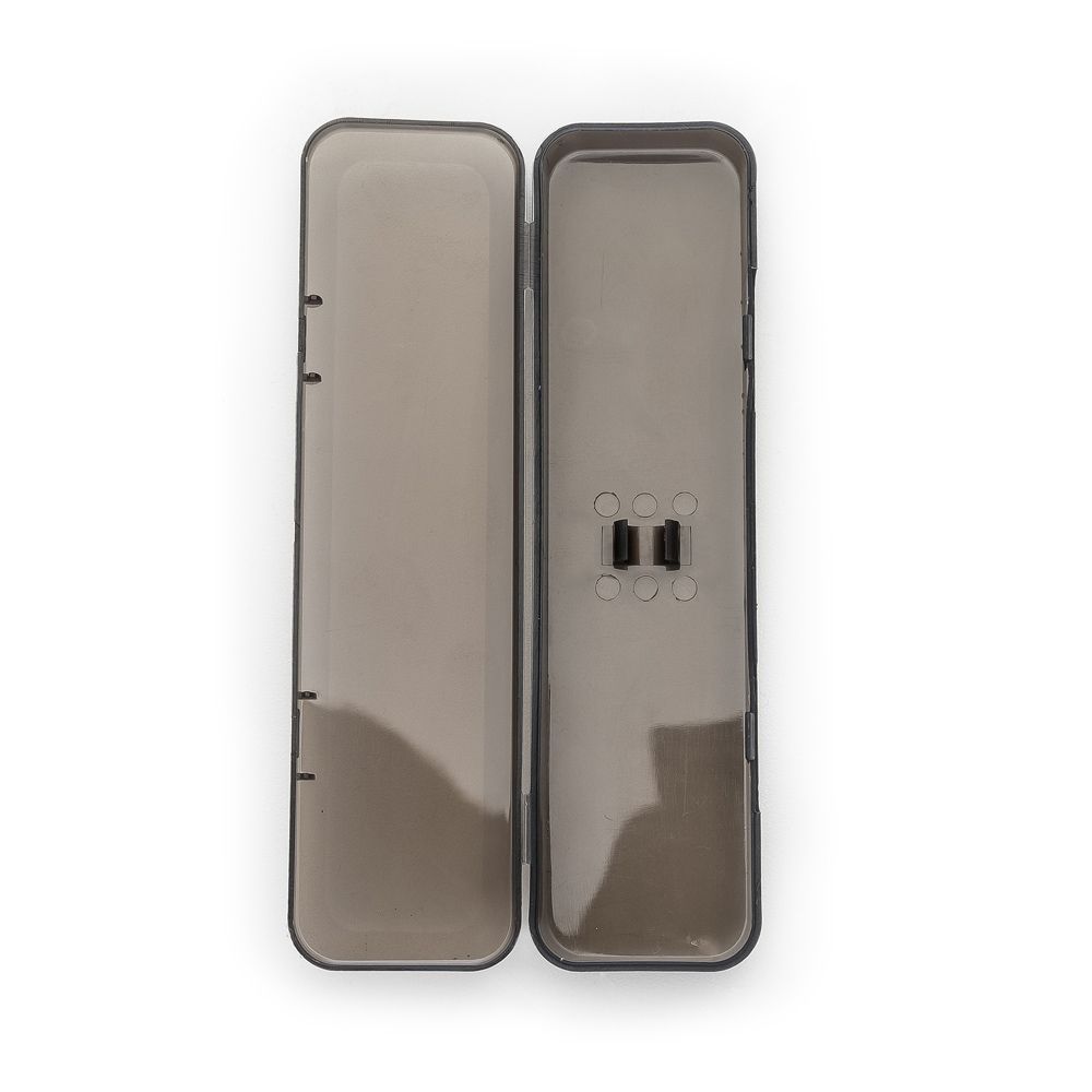 Descrição: Estojo plástico para uma caneta, pintura fosca e apenas parte central da tampa transparente. Possui um suporte internos para fixar a caneta. OBS.: PEDIDO APENAS MÚLTIPLO DE 50 PEÇAS!