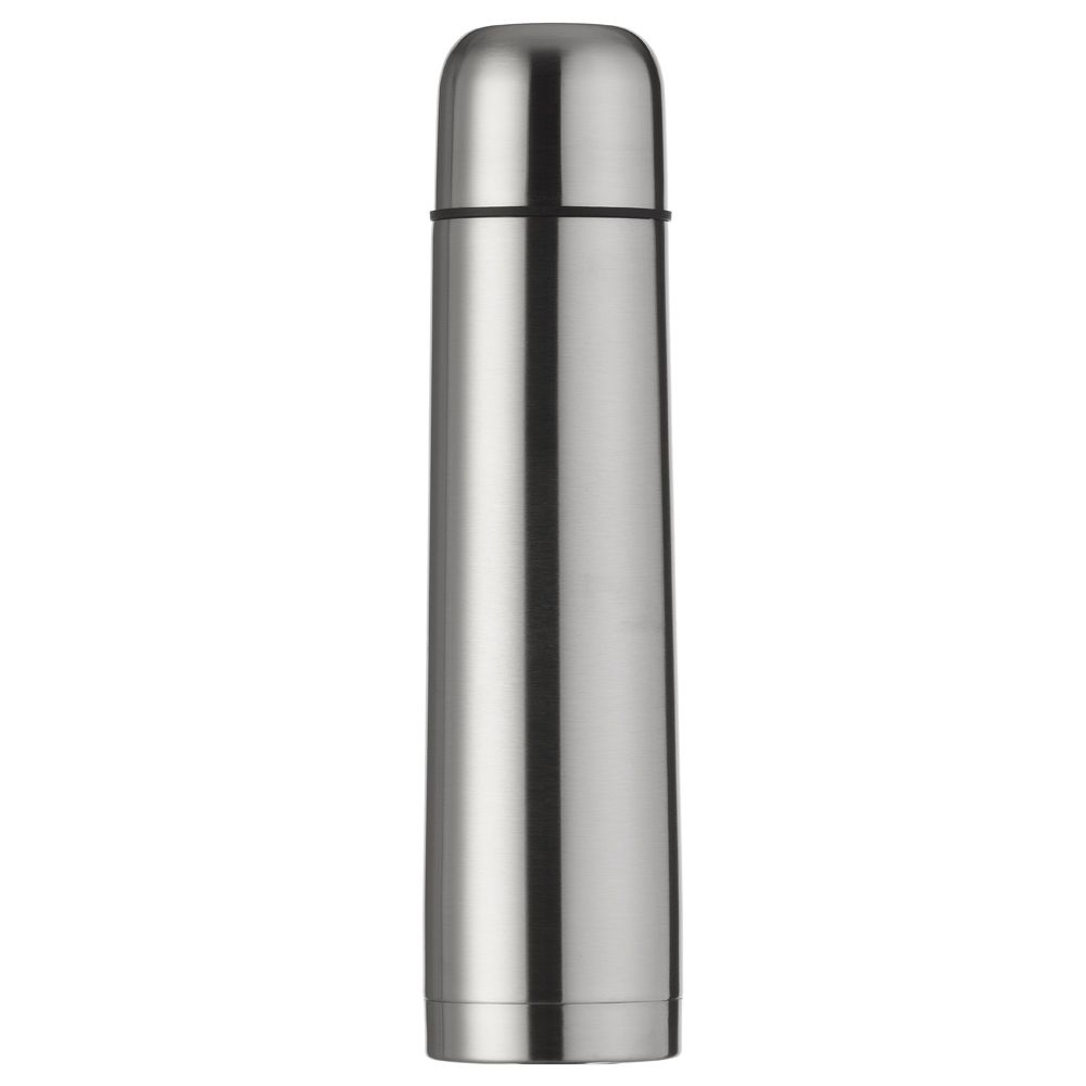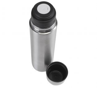 Descrição: Garrafa térmica 1L em inox com tampa rosqueável, tampa interna em plástico resistente(basta um clique para abrir ou fechar). Acompanha capa protetora de couro sintético com alça em nylon e detalhe vermelho.