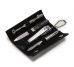Descrição: Kit Manicure 4 peças em estojo de couro sintético revestido com veludo interno. Possui dois botões para lacrar o estojo, acompanha corrente e parte interna com alça em couro sintético. Contém: limpador de unha, lixa, cortador de unha e pinça.