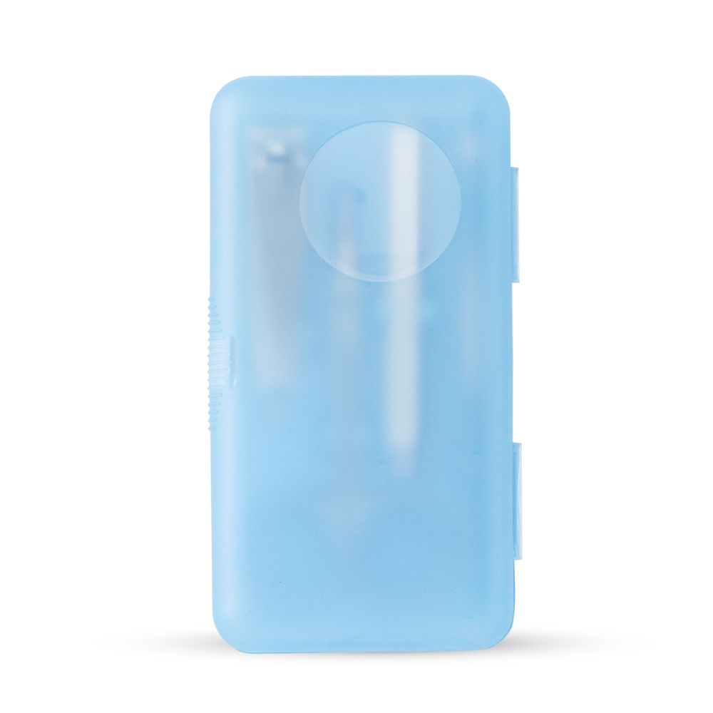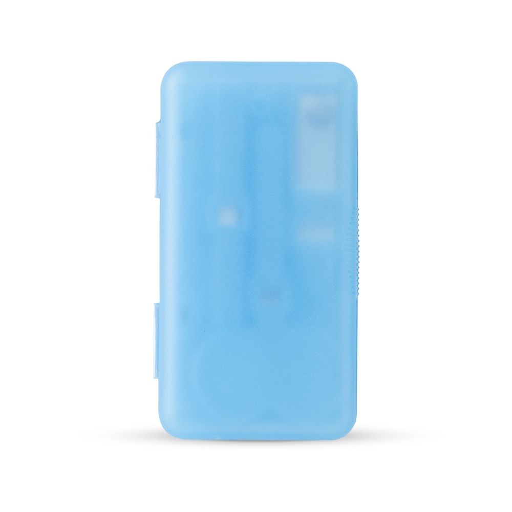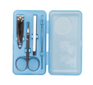 Descrição: Kit manicure 4 peças em estojo plástico. Possui: cortador de unha, tesoura, pinça e empurrador de cutícula. Estojo fosco com detalhe circular liso no canto esquerdo frontal, verso inteiro fosco. Parte interna com suporte plástico.