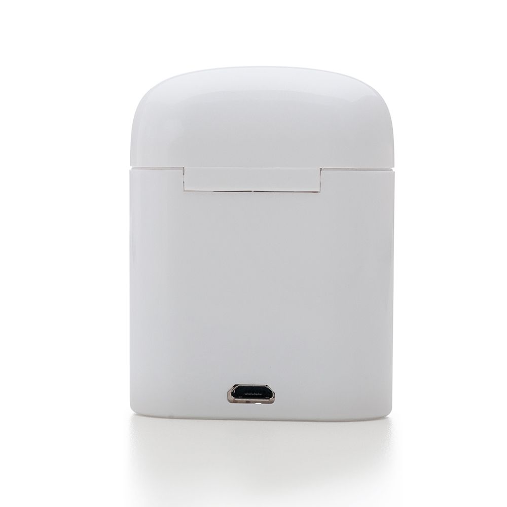Descrição: Mini fone bluetooth plástico com case carregador. Para utilização do produto, pressione e segure o botão lateral de ambos fones ao mesmo tempo, luzes led em vermelho e azul ficarão piscando alternadamente até a junção das duas partes (quando conectadas apenas um lado dos fones permanecerá aceso), após realizado o processo conecte o fone através do bluetooth e o led se apagará, indicando a conexão ao dispositivo. Quando emparelhado, pressione uma vez o botão do fone para iniciar ou pausar uma música, ao segurar o botão irá avancar a faixa; no modo ligação pressione uma vez o botão para atender a chamada ou segure o botão do fone para recusá-la. Para o carregamento do produto é necessário recarregar inicialmente o case e após este processo basta conectar os fones no estojo e pressionar o botão power para o carregamento dos mesmos. Fones com microfone embutido; Frequência 2.4 -2.485GHz; Alcance 10 de metros e tempo de funcionamento aproximadamente 1 hora. Enquanto o case é carregado o led vermelho ficará piscando, ao concluir a carga o led permanecerá aceso; no carregamento dos fones leds vermelhos ficarão acesos e ao concluir a carga se apagarão. Acompanha cabo USB.