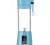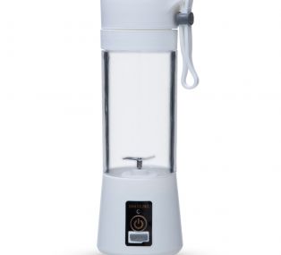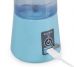 Mini liquidificador smart 380ml de plástico resistente. Tampa superior de rosqueável com emoticon em relevo, alça emborrachada trava cinza(não removível); tampa interna rosqueável com peneira; copo plástico rígido rosqueável; base plástica ABS com ventoinha inox e anel de vedação em silicone, possui botão liga/desliga, luz led indicativo de funcionamento, entrada USB com proteção emborrachada e parte inferior com borrachas anti-deslizantes. Rosqueie o copo até o fim da base para utilização, caso contrário a ventoinha não irá funcionar e ficará alternando a luz led entre azul e vermelho, indicando mal funcionamento. Modelo do motor DC3.6V; Rotação do motor com liquidificador vazio <22000RPM, com frutas/líquido interno <15000RPM; Corrente 10-12A; Tipo da bateria 3.7V; Bateria 2000mAh; Tempo de duração aproximadamente 3 horas. Acompanha cabo USB.