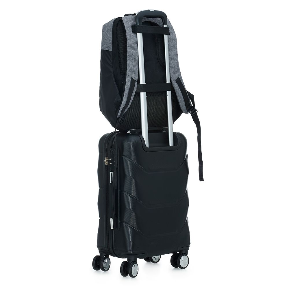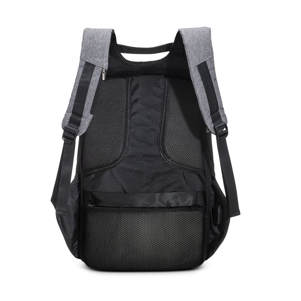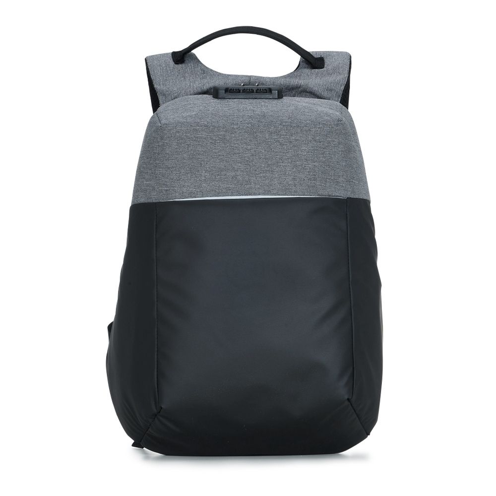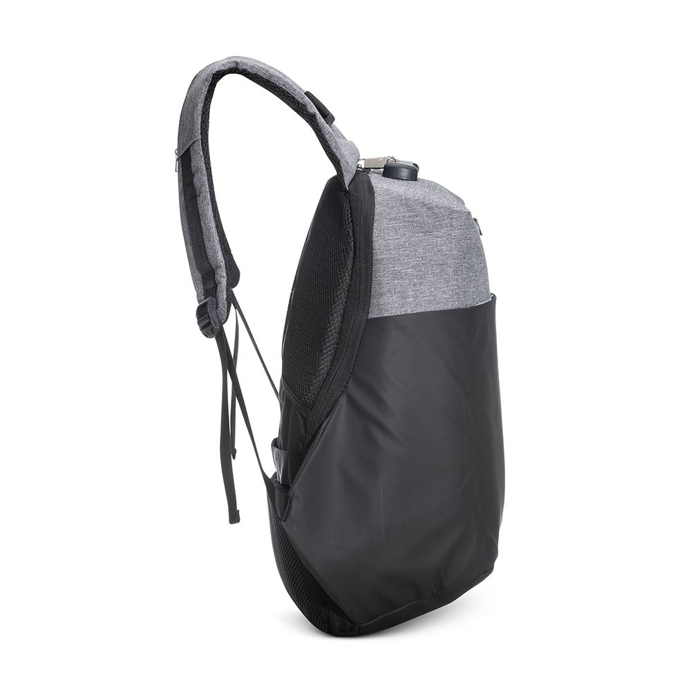 Descrição: Mochila anti-furto com cadeado de segredo. Material poliéster com detalhes em nylon, possui formato anatômico e design moderno, tem a parte frontal à prova d’água e tecido impermeável. Pensando na segurança do usuário foi confeccionado o compartimento principal na área traseira e um cadeado de segredo na área superior para travar os zíperes, impossibilitando a abertura do produto mesmo com a mochila na costa do usuário. Possui suporte com entrada USB na parte externa e cabo USB acoplado internamente; permitindo a conexão de um carregador portátil na área interna e a conexão de um eletrônico na área externa, viabilizando a carga e utilização do eletrônico enquanto caminha. Área interna do compartimento principal: bolso para notebook de 15,6 polegadas, quatro bolsos para acessórios, bolso com zíper; possui nas laterais internas sistema de velcro( maximizando a segurança da mochila) e área inferior externa com bolso traseiro. Alças para costa ajustáveis sendo uma delas com bolso de zíper, alça para mãos, alça horizontal para encaixe em malas de viagem, alças de costa e parte traseira revestidas com espuma para um maior conforto. Acompanha plaquinha para personalização. Utilização do cadeado: para criar um segredo pressione e segure o botão “push”, crie a numeração desejada e em seguida solte o botão para assumir a codificação criada, repita o mesmo processo sempre que necessitar fazer alguma alteração.