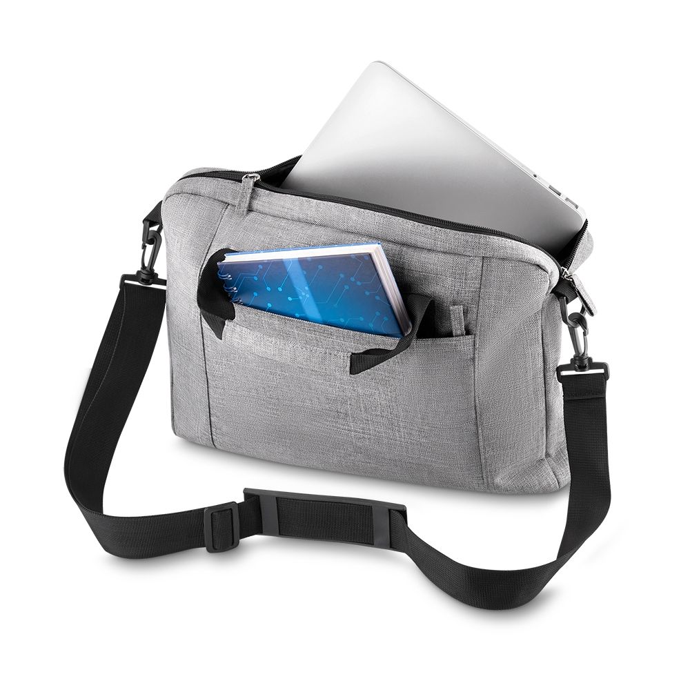 Descrição: Pasta executiva de poliéster, possui bolso externo com zíper, compartimento superior com bolsos para documentos e compartimento para notebook. Acompanha alça para mãos e alça de uso transversal ajustável(removível).