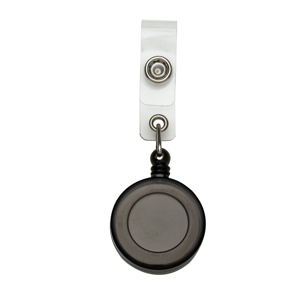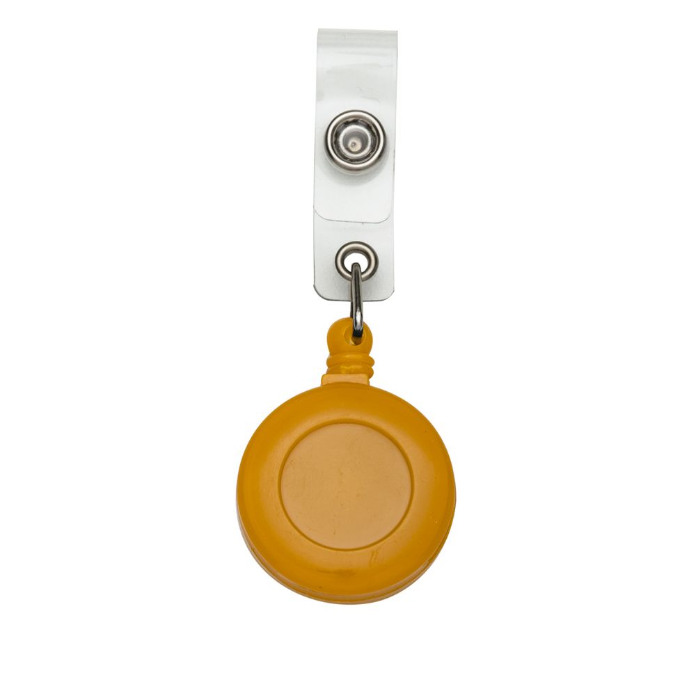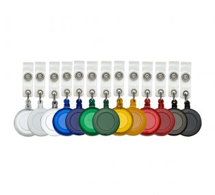 Descrição: Porta crachá retrátil plástico, cores leitosas e translúcidas. Roller clip possui sistema extensor em nylon que após puxar é recolhido automaticamente. Possui presilha metálica na parte traseira e alça plástica com botão.