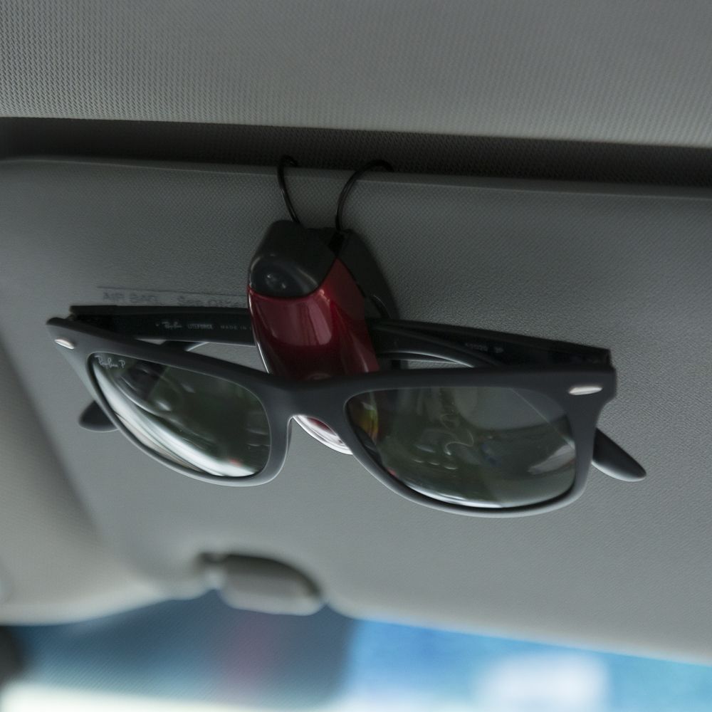 Porta óculos colorido de plástico com detalhes preto. Haste de metal, pressionando “tampa” o compartimento superior se abrirá.