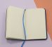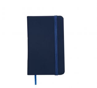 Caderneta tipo moleskine emborrachado de frente e verso liso, marcador de página em cetim e fita elástica para fechar. Contém aproximadamente 80 folhas amarelas sem pauta.