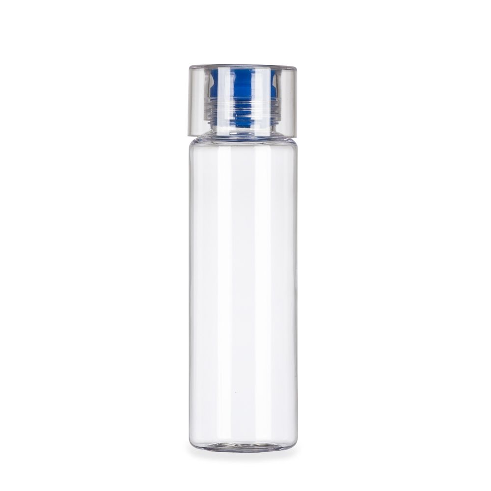 Descrição: Squeeze plástico 600 ml com tampa rosqueável. Material plástico transparente com tampa, possui bico/tampa interna emborrachada colorida. Ambas rosqueáveis.