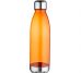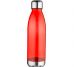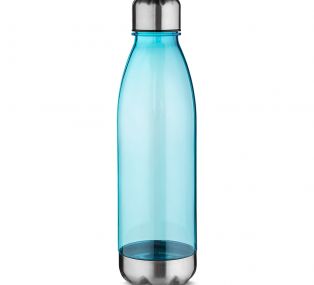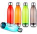 Descrição: Squeeze plástico 700ml formato garrafa. Corpo transparente colorido, possui tampa e base em alumínio.